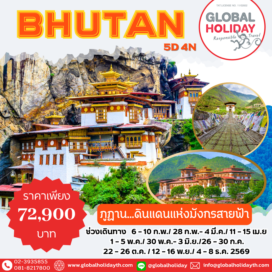2023 ทัวร์ภูฏาน นี้ที่เที่ยวครบทุกเมืองสำคัญ พาโร ทิมพู ปูนาคา พาไปชม ปูนาคาซอง ป้อมปราการที่สวยที่สุดในภูฏาน พาชมวิว เทือกเขาหิมาลัย แบบพาโนรามาสวยสะกดทุกสายตา และมาสูดอากาศบริสุทธิ์ที่คาร์บอนไดออกไซด์ติดลบประเทศแรกในโลก มาเที่ยวภูฏานกับเรา โกลบอล ฮอิลเดย์ นำท่านพักโรงแรมระดับสี่ดาวคุณภาพนับเป็น ทัวร์ภูฏานที่ดีที่สุด จัดรายการท่องเที่ยวที่พาไปครบคุ้มค่า มาสัมผัสมนต์เสน่ห์ ความเชื่อ และความสุขที่ ภูฏาน