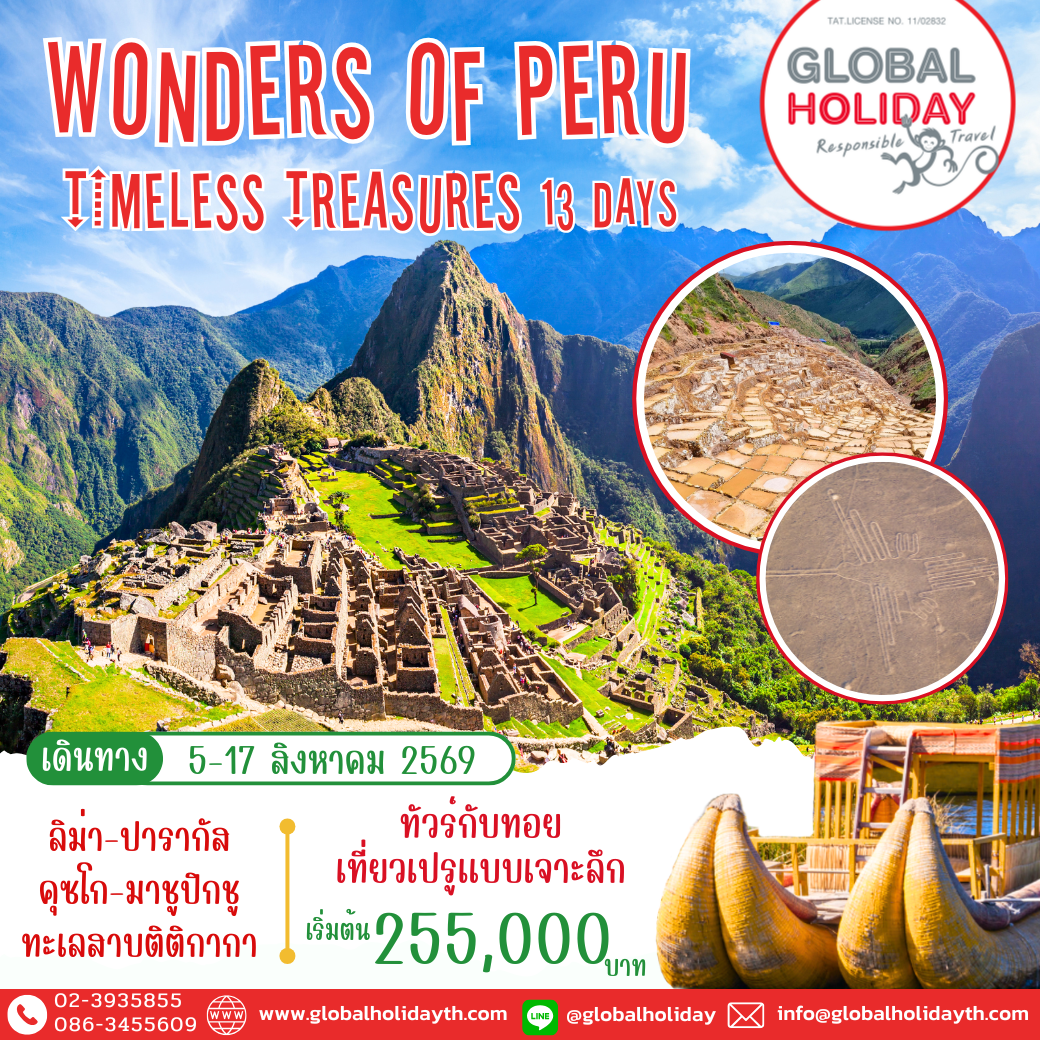 ลิม่า เมืองริมทะเลแปซิฟิก ก่อนตามรอยอารยธรรมอินคาไปยัง คุซโก และ มาชู ปิกชู มรดกโลกที่งดงามเหนือคำบรรยาย พร้อมสำรวจ หุบเขาศักดิ์สิทธิ์ ที่เต็มไปด้วยวัฒนธรรมและภูมิทัศน์อันน่าตื่นตา