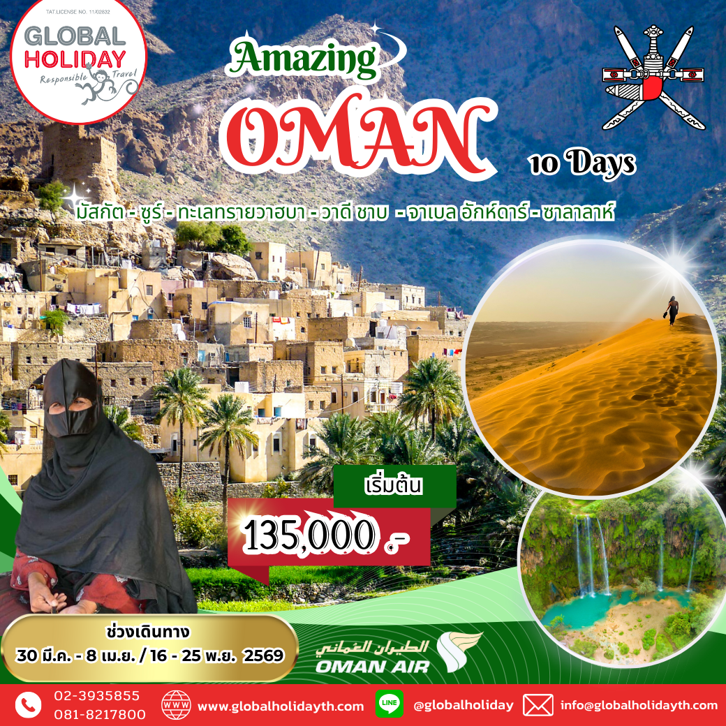 มัสกัต - ซูร์ – ทะเลทรายวาฮิบา - อิบรา - หุบเขาจาเบล อักห์ดาร์ - นิซวา – ซาลาลาห์